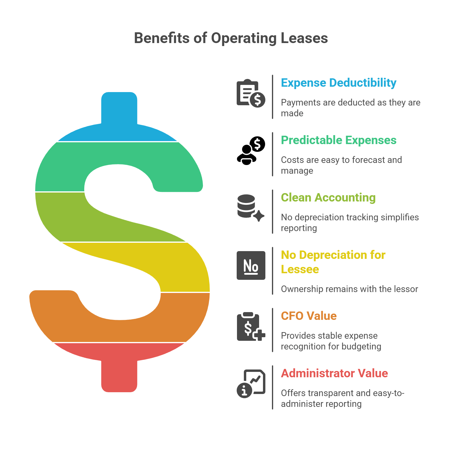 Medical administrators and other leaders who prioritize audit-friendly reporting also favor operating leases for their transparency and ease of administration.